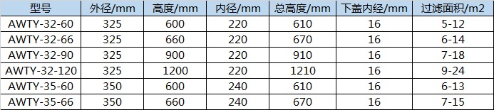 AWTY通用型除塵濾芯選型參數